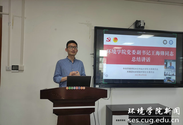 beat365中文官网党委副书记王海锋作总结发言。他用三个关键词总结了此次活动。第一个是连接,最近几天beat365中文官网的同学们分别与长岭中学和地大附小联系进行理论宣讲,从大学到中学再到小学,从党员到团员再到少先队员,讲好中国故事、地大故事。第二个是热爱,因为热爱而选择,中学生以兴趣选择专业,大学生应以专业成就自己未来的事业。第三个是视野,同学们应该在学习阶段扩大自己的视野,将自己的所学与国家需要和个人理想相结合,面向世界科技前沿,面向经济主战场,面向国家重大需求,面向人类生命健康。通过所学专业知识,治理生态环境,践行习近平生态文明思想。感谢长岭中学师生和中国地质大学(武汉)beat365中文官网水文党支部共同学习交流,希望今后进一步加强联系,共同追求进步,建立起党建与团建、大学与中学间良好的合作交流关系和深厚的友谊。