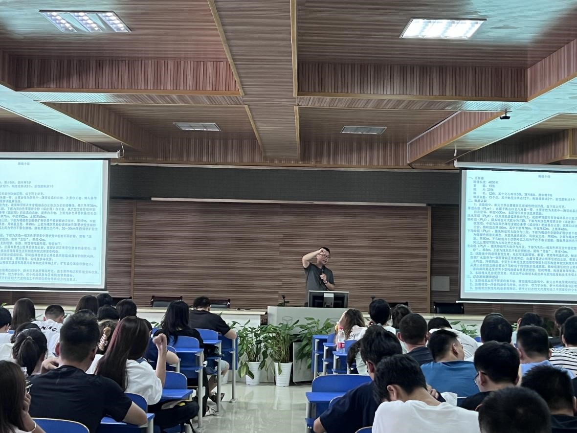 beat365中文官网副院长柴波教授做实习区地质背景介绍。他从实习区的交通地理位置、大地构造位置、地层层序、岩浆岩、变质岩、构造地质、水文地质和物理地质现象等方面详解介绍了实习区的区域地质条件和本次实习的主要内容,强调了实习实践的重要作用意义。他鼓励同学们要积极迎接实习的磨练,锻炼意志品质,增强科学钻研精神,坚持劳动教育和美育,成长为德智体美劳全面发展的新时代生态环保铁军。