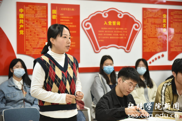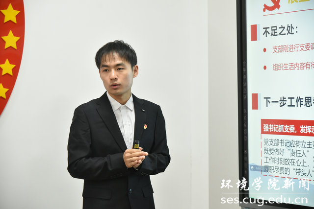 曾杰老师领学习近平总书记给山东省地矿局第六地质大队全体地质工作者的重要回信精神。他首先带领大家重温了习近平总书记回信原文,并传达了自然资源部党组、学校党委专题学习会议精神。最后他结合个人经历,从一名地质人、一名地质教育工作者、一名党员三个角度分享了个人体会。他说,总书记肯定了地质工作者的工作精神,指出了矿产资源在经济社会发展和资源安全方面的重要性,在学习回信精神后,他倍感温暖、倍受鼓舞。他提到,地质专业大有可为,青年学生要传承地大人为国找矿、地质报国的红色基因,树立远大理想,脚踏实地,甘于奉献,以扎实的地质专业基础,投入到社会主义现代化建设中去。