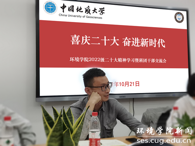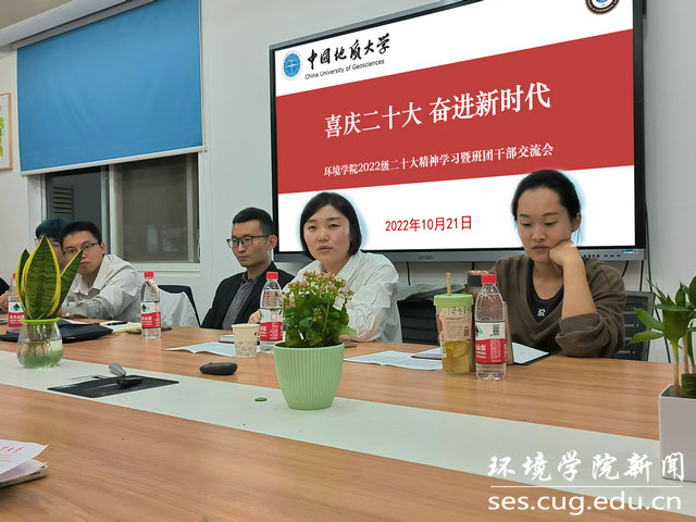 各班班长和团支书依次进行党的二十大学习感想交流分享。04H225班杨凯歌谈到:“对于二十大报告中,关于完成‘脱贫攻坚、全面建成小康社会的历史任务’我深有感触,我父母都是作扶贫工作的,之前忙于工作很少关心我,当时心有抱怨,长大后我才慢慢理解父母的工作,更加引以为豪”。04H223班赵哲说到:“习近平总书记报告中指出‘坚持山水林田湖草沙一体化保护和系统治理’,作为beat365中文官网的新成员,我们愿为打好蓝天、碧水、净土保卫战不懈奋斗,争做红专能优生态环保铁军。”
