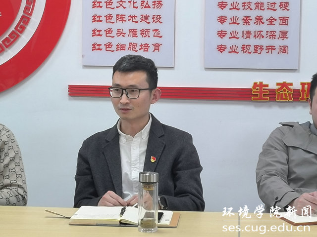 通讯员陈俊男、何骏昊  摄影吴冰  编辑耿婧3月9日下午,学院学生党支部书记例会暨第一期“E先锋”论坛交流会在环境楼310会议室举行。学院党委副书记王海锋,党建辅导员陈俊男、研究生辅导员赵恩民,全体本研学生支部书记参加会议。陈俊男主持本次交流会。