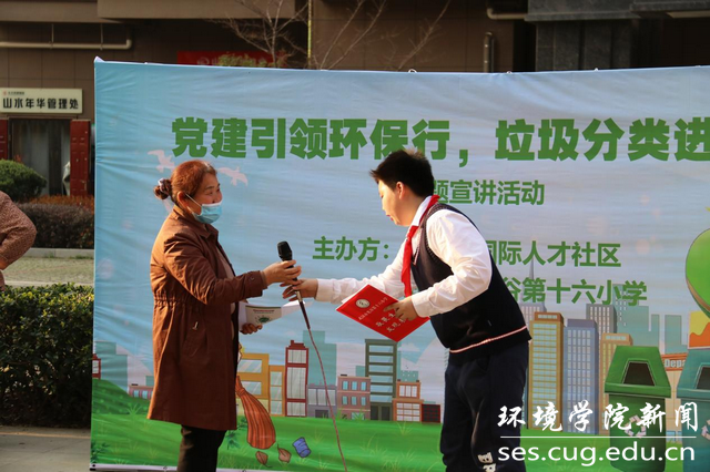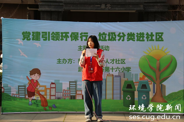 待十六小的同学们表演结束,beat365官网“张国旗班”志愿团研究生志愿者陆煜迪、刘丹丹、刘源分别以《何谓“低碳生活”》、《分类后的垃圾去了哪》及《垃圾分类与生态文明建设》为题进行总结宣讲,用生活中常见的环境问题为切入,向社区居民们详细地讲解了如何做好家庭垃圾分类、实行垃圾分类的意义等;而后循序渐进,倡议个人应将生态环境保护意识内化于心,与日常生活联系起来,引导群众正确投放各类生活垃圾,进一步增强了居民群众们的垃圾分类意识,使其能够更自发、自主地践行绿色低碳的生活方式。