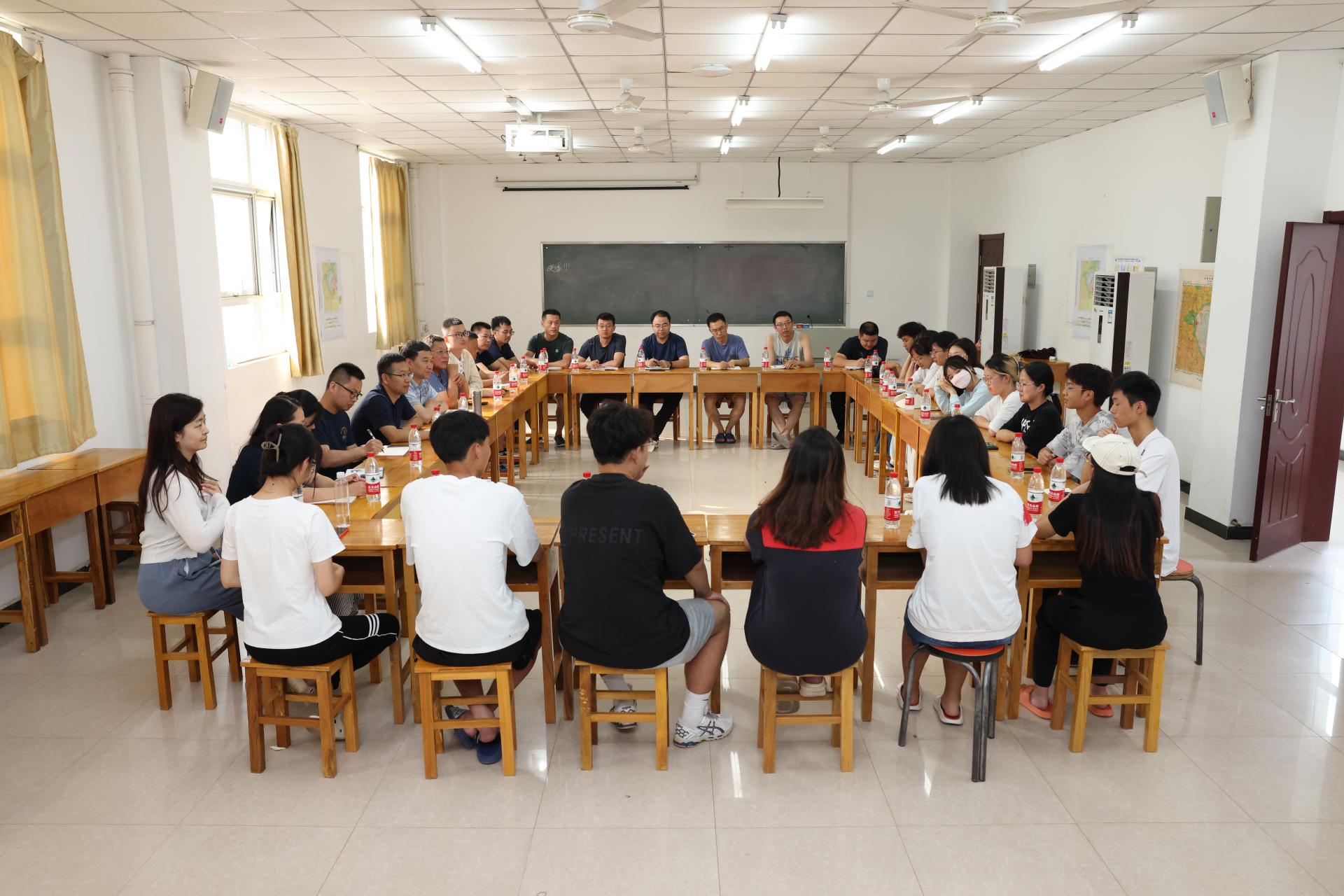 (通讯员陈俊男 摄影张祖浩 编辑耿婧)8月10日下午,周口店教学实习基地召开师生座谈会。学院党委书记李素矿、院长史建波、党委副书记王海锋,学院办公室主任刘凤莲一行参加周口店实习基地师生座谈会,全体实习带队老师、辅导员以及学生代表40余人参加活动。陈俊男主持座谈会。