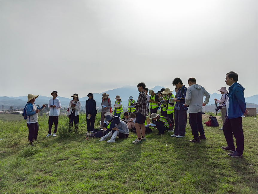8日一早,李素矿一行参加了石门寨野外路线实习。在野外,李素矿与实习师生一起观察地质现象,交流学习心得。