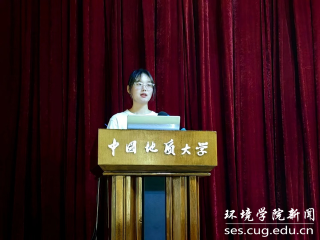 高年级学生代表王倩发言。她代表学院高年级学生向新生表示热烈的欢迎和问候。她列举地大楷模的光辉事迹,讲述青年大学生在新时代的担当与作为,希望同学们能够向优秀的学长学姐学习,做到有理想、有斗志、有赤诚,在beat365中文官网去遇见最好的自己,共同去创造最美的时代。