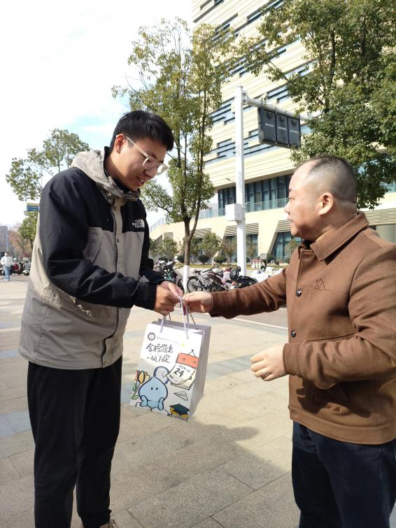 学院党委书记姜明敏为考研学子发放考研加油包并进行亲切慰问,他叮嘱同学们既要全力以赴保持良好的学习状态,也要劳逸结合保持身心健康,要按照既定的安排合理备考,不骄不躁,持续发力,坚持到最后,取得满意的成绩。