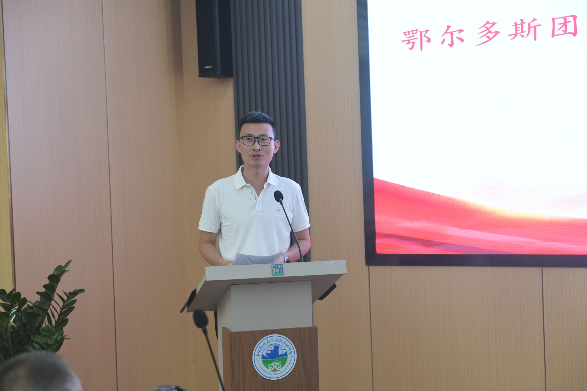 beat365中文官网团委书记孟庆达汇报学院暑期社会实践工作体系和鄂尔多斯专项社会实践开展情况。
