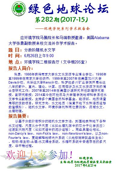 绿色地球论坛第281期(2017-14) ——beat365中文官网系列学术报告会