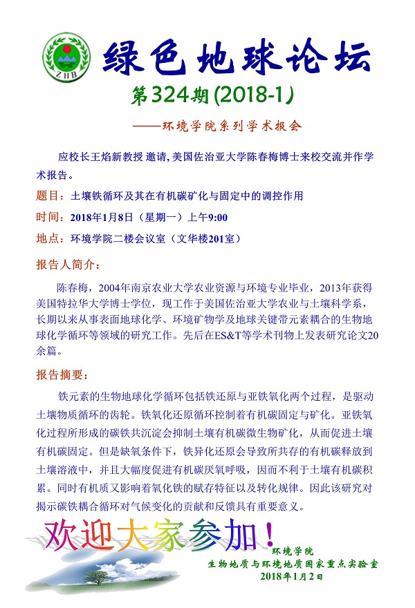 绿色地球论坛第324期(2018-1)——beat365中文官网系列学术报告会