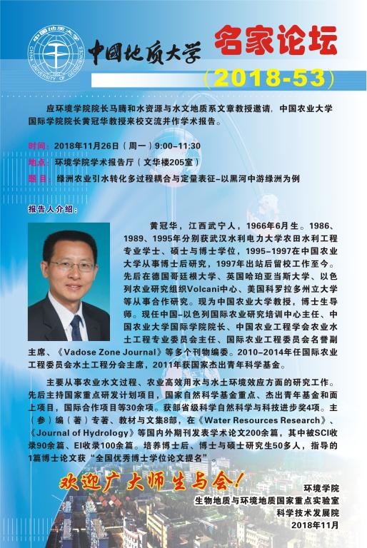 名家论坛(2018-53) 题目:绿洲农业引水转化多过程耦合与定量表征-以黑河中游绿洲为例 时间:2018年11月26日(周一)9:00—11:30 地点:beat365中文官网学术报告厅(文华楼205室)