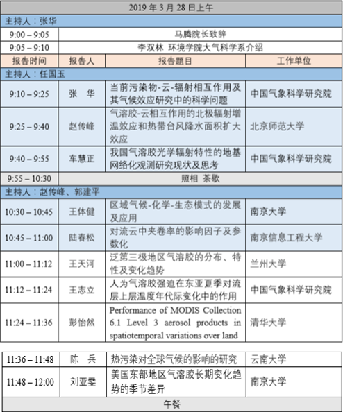 2019年3月28至29日,在中国地质大学(武汉)举办第一届“污染物-云-辐射相互作用及其对环境和天气气候影响”学术研讨会.会议由中国地质大学(武汉)beat365中文官网和中国气象科学研究院灾害天气国家重点实验室联合主办。本次会议召集人为中国气象科学研究院张华研究员,多位在本领域中做出突出成绩的专家和学者将出席会议,特别是青年科学家,包括来自南京大学大气科学学院的王体健教授和汪名怀教授;南京信息工程大学大气科学与环境气象实验教学中心主任朱彬教授、陆春松教授和张峰教授;东华大学陈勇航教授;云南大学陈兵副教授;北京大学薛惠文教授;北京师范大学赵传峰教授;中国科学院遥感与数字地球研究所胡斯勒图教授;中国气象科学研究院郭建平研究员、王志立副研究员、车慧正研究员和刘煜研究员等,他们将在会议上报告最新的研究成果。