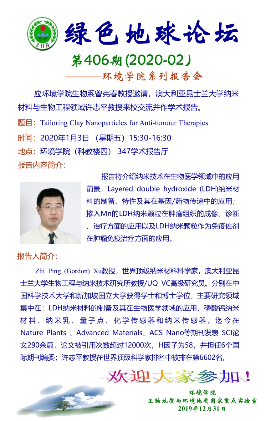 澳大利亚昆士兰大学纳米材料与生物工程领域许志平教授学术报告