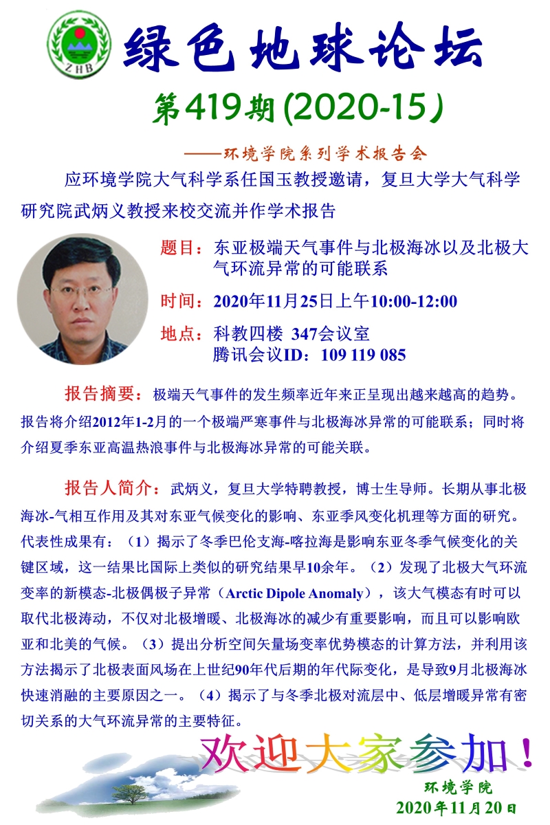 北京大学物理学院大气科学系钱维宏教授学术报告