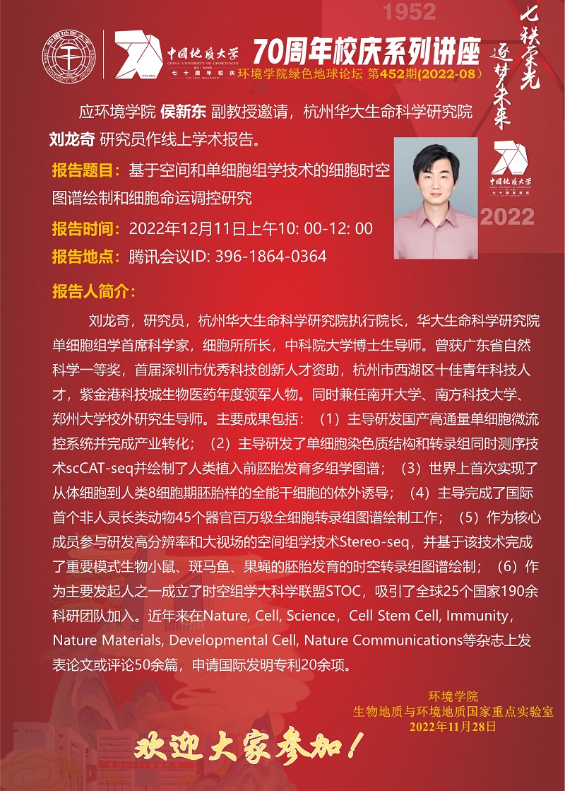 杭州华大生命科学研究院刘龙奇研究员做客“知名学者学术讲座”