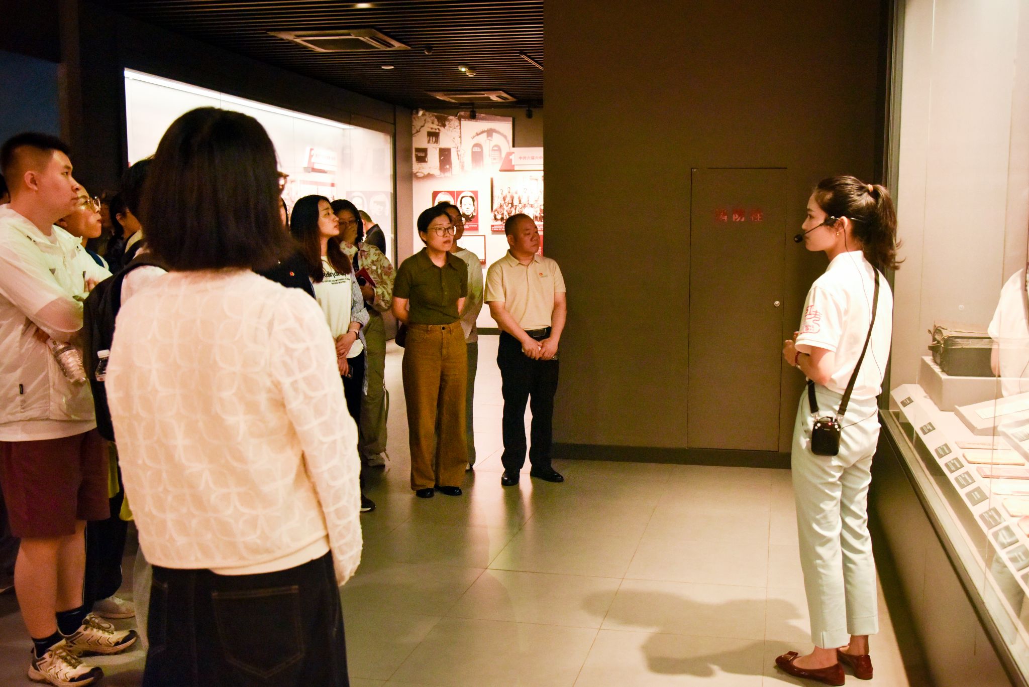 在中共五大会址纪念馆,全体师生党员代表依次参观中共五大开幕式会场、中共五大历史陈列、陈潭秋在武汉等陈列,通过珍贵的历史文物、详实的图文资料和生动的场景复原,深入了解中共五大召开的历史背景、重大决策及其对中国革命的深远影响。参观过程中,同志们驻足交流,深刻感悟到老一辈革命家坚定的理想信念和艰苦奋斗的精神。