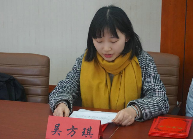 郑淑睿、吴方琪两位同学分别发言。她们谈到自己只是一个普通的人,做了一件普通的事,当时救助老人是出于本能反应。要感谢所有伸出援助之手的人,参与救助的群体凝聚成了寒冬里最温暖的力量。她们表示,今后将一如既往地做好自己,秉承地大人精神,永葆环境人情怀,不忘初心,砥砺前行。