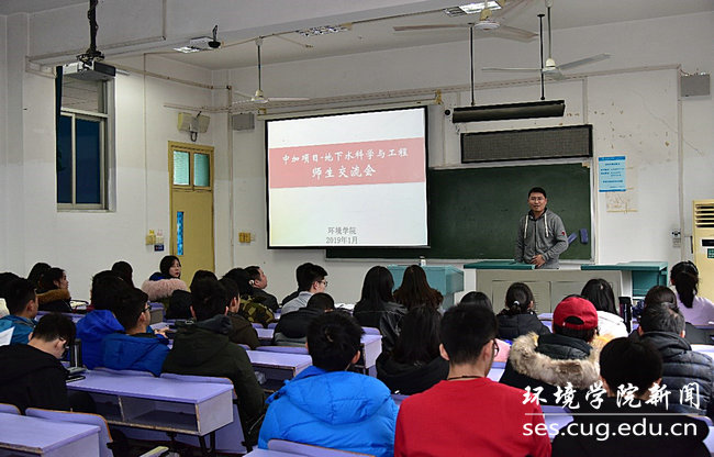 (通讯员 卢笙 摄影 孟国强 编辑 张学海)2019年1月11日下午,首届“地下水科学与工程”中加合作办学项目师生总结交流会在教三楼302举行。学院党委书记李素矿,副院长郭会荣、党委副书记姜明敏,班主任刘鹏、学工组辅导员李平、孟国强、中加项目秘书严冰、中加项目专职辅导员卢笙、中加项目教务秘书付苑婷、国际合作处项目专员刘婧宙及首届“地下水科学与工程”专业中加合作办学班37名同学参加师生总结交流会。