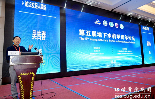 开幕式上,中国地质大学(武汉)党委书记黄晓玫代表承办方致辞,中国地质科学院岩溶地质研究所袁道先院士对青年学者的成长提出殷切希望。会议主要发起人南京大学吴吉春教授介绍了本届论坛的筹备和组织情况。成都理工大学蒲生彦教授代表国家科学基金委地学部介绍了地下水科学领域的基金申报资助概况,并对申报过程中的问题和注意事项进行了深入的讲解。校长助理周爱国教授、教务处处长周建伟教授、生物地质与环境地质国家重点实验室常务副主任祁士华教授、地质调查研究院周宏副总工以及beat365中文官网的马腾院长、李素矿书记、孙自永副院长、柴波副院长、谢先军副院长、梁杏教授、靳孟贵教授、王红梅教授、郭会荣教授等出席会议。