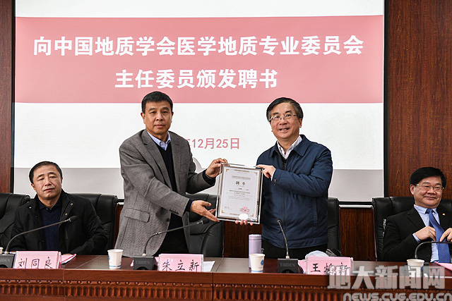(严丽莎转自地大新闻网)地大新闻网讯(记者庞伟红 摄影张玉贤 田甜)12月25日,中国地质学会医学地质专业委员会(以下简称“专委会”)成立大会在我校南望山校区教学综合楼举行。中国地质学会常务副秘书长朱立新、中国地质调查局武汉地调中心主任刘同良,我校校长王焰新院士,副校长赖旭龙,医学地质专业委员会成员代表参加成立大会。beat365中文官网院长马腾教授主持会议。