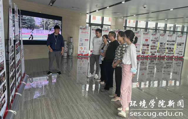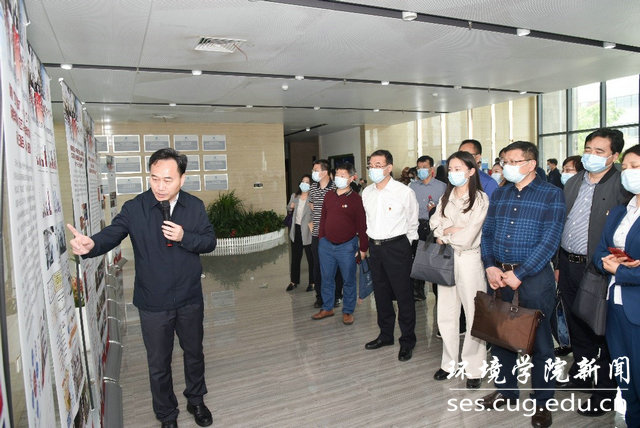 百余名参加湖北省高校党建工作现场推进会的全省八十多所高校的党委组织部部长、院系党组织书记参观成果展。学院党委书记李素矿讲解。