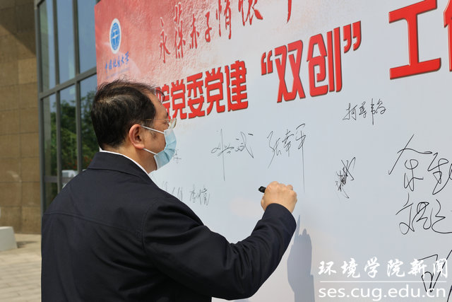 湖北省委教育工委专职副书记、省教育厅党组成员张幸平在“永葆赤子情怀、争做时代先锋”beat365中文官网党委党建“双创”工作成果展签名。