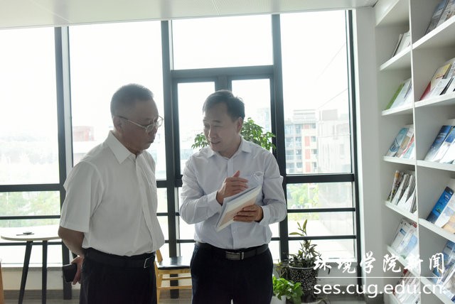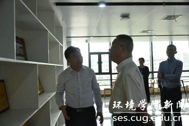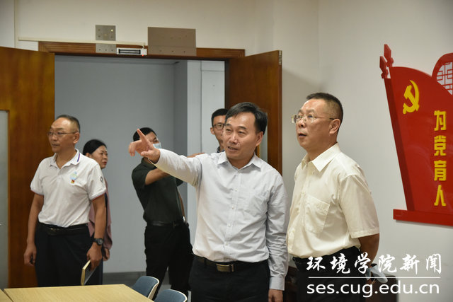 在一楼学院党建双创成果展前,简要介绍了学院党建与思政工作总体情况,重点汇报了红专能优生态环保铁军育人体系制度设计、水-土-气-生-环跨学科教育范式、张国旗班行动计划、美丽中国4+N课程思政、1+6党建资政育人载体等党建思政工作的主要做法、成功经验、标志成果、育人成效和社会反响。