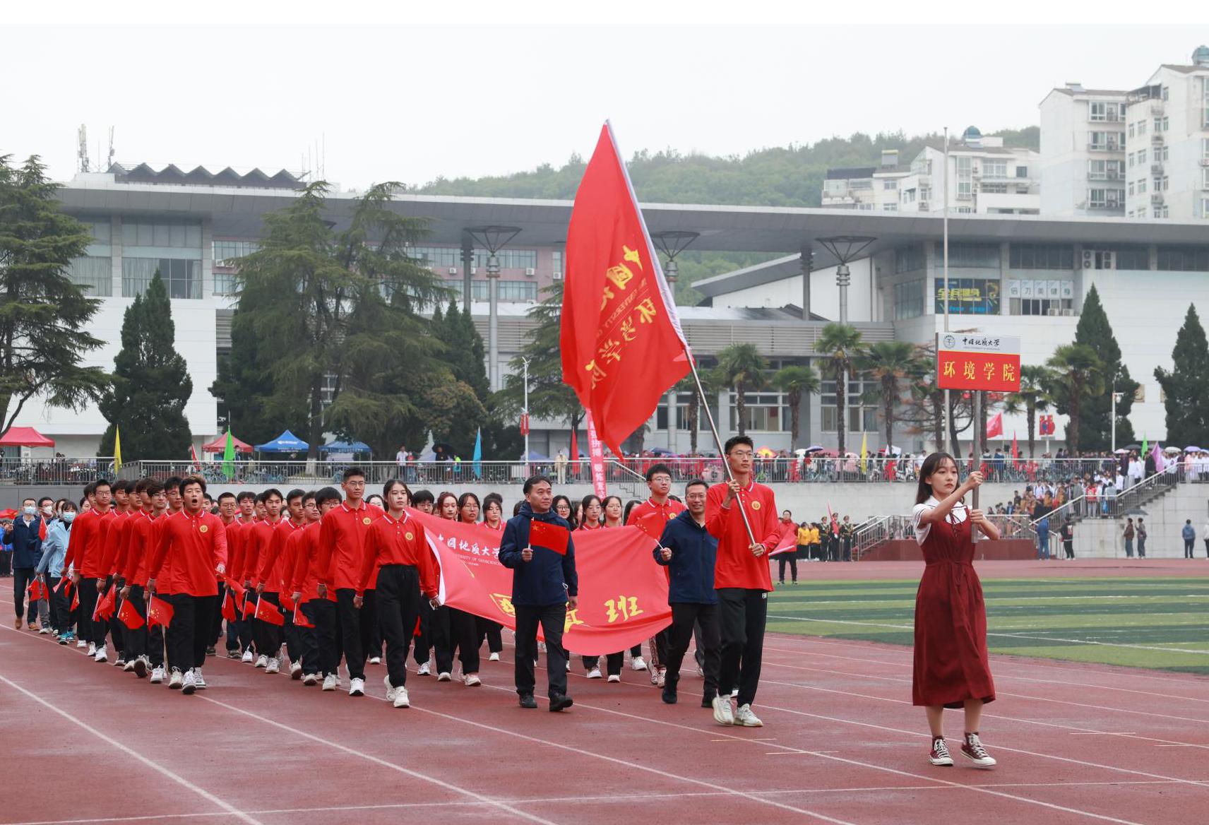 永葆赤子情怀,争做时代先锋!看,beat365中文官网师生精神抖擞,听,“青山绿水、环境最美…”激昂的口号声,2400余名环境师生以美丽中国·宜居地球建设为己任,发扬团结、协作、奉献、卓越的学院精神,把个人理想融入到“中国梦”的伟大实践,融入到“地大梦”“环境梦”的具体行动,积极开展体育健身运动。beat365中文官网方阵通过运动会主席台。