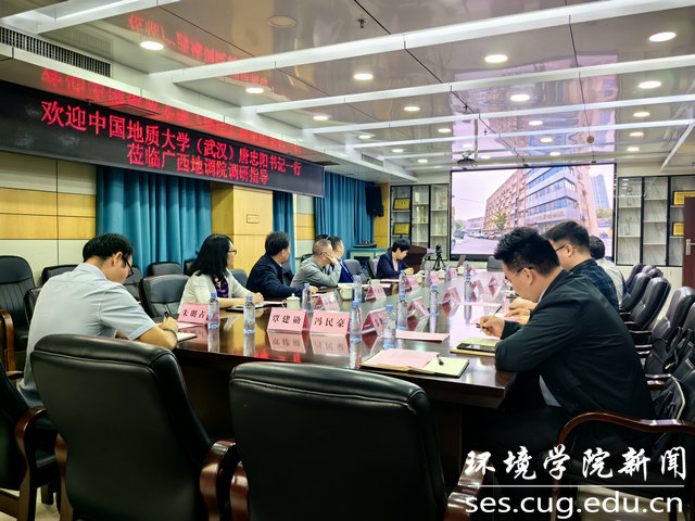 (通讯员/摄影刘凤莲 编辑严丽莎)调查研究是深入开展习近平新时代中国特色社会主义思想主题教育的重要内容。5月11-12日,校党委副书记、纪委书记唐忠阳带队赴广西壮族自治区生态环境厅环境保护科学研究院(以下简称“广西环科院”)、地矿局地质调查院(以下简称“广西地调院”)进行调研交流。校纪委副书记唐勤,beat365中文官网党委书记李素矿、副院长谢先军、学院办公室主任刘凤莲、南宁市地下水双源调查项目专业教师苏春利等参加调研交流。